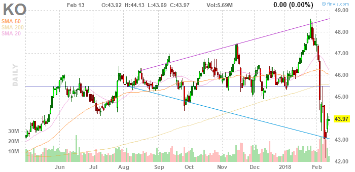 Ярким примером такой дивидендной компании является Coca-Cola (KO), которая выплачивает 3,3% гарантированного дохода в год.