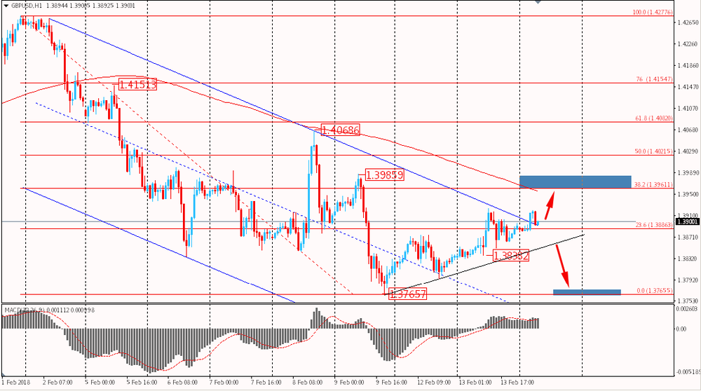 GBP/USD: в ходе азиатской сессии пара торговалась в диапазоне $1.3880-20. Пара GBP/USD продолжает вчерашнюю консолидацию, но все еще находится под полным контролем медведей. Пара торгуется около уровня Fibo 23.6 и тестирует сопротивление наклонного нисходящего канала. Однако, есть вероятность более сильного подъема к $1.3960-85 (максимум 9 февраля, MA 200 H1 и 38.2 Fibo).