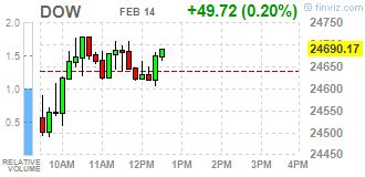 Большинство компонентов индекса DOW в минусе (19 из 30). Лидер роста - NIKE, Inc. (NKE, +1.82%). Аутсайдер - The Procter & Gamble Company (PG, -1.40%).