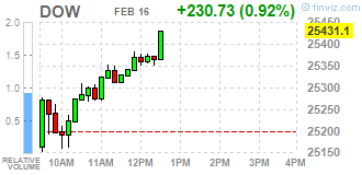 Большинство компонентов индекса DOW в плюсе (28 из 30). Лидер роста - Pfizer Inc. (PFE, +2.27%). Аутсайдер - McDonald's Corporation (MCD, -1.25%).