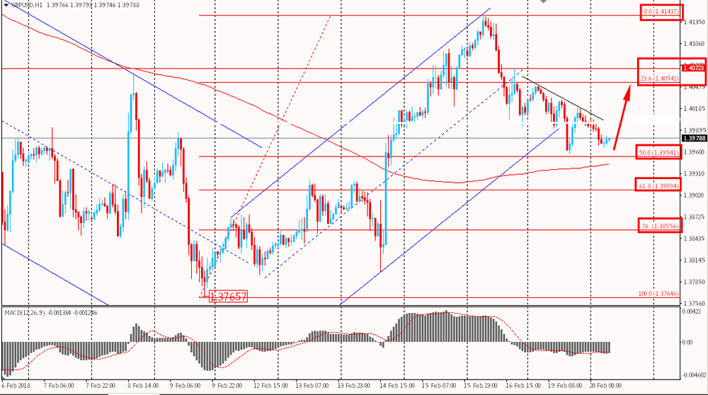 Пара GBP/USD продолжает вчерашнее снижение и упала сегодня к отметке $1.3970. На данный момент мы наблюдаем развитие коррекционного движения после нескольких дней бурного ралли и подъема к $1.4143. Глобально, пара по-прежнему торгуется выше скользящей средней MA 200 H1 и тестируется поддержку наклонного канала и уровень 50% Фибо. Как только фунту удастся закрепиться выше уровня сопротивления вчерашнего дня - ралли прошлой недели может продолжиться.