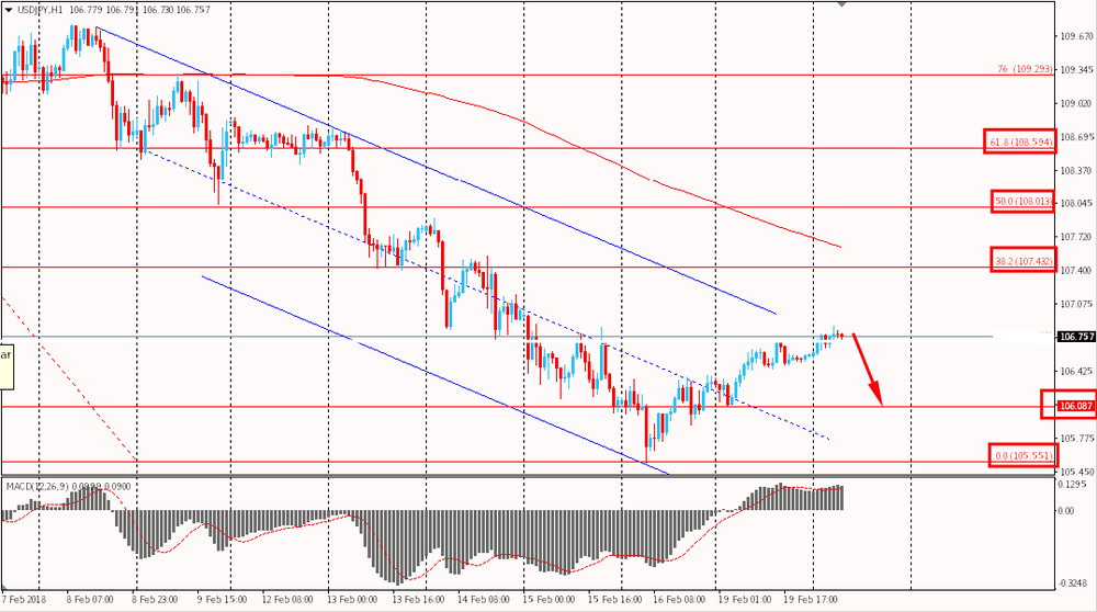 Пара USD/JPY со 2 февраля продолжает свое глобальное нисходящее движение. Однако, в пятницу и вчера пара, поддерживаемая дивергенцией и перепроданностью по RSI (14) на D1, начала корректироваться. Сегодня утром USD/JPY выросла к Y106.85 и коснулась наклонного уровня сопротивления нисходящего канала от 8 февраля. Стоит отметить, что глобально пара все еще торгуется ниже MA 200 H1 и медведи сохраняют контроль.