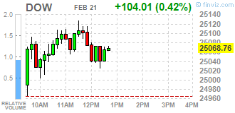 Большинство компонентов индекса DOW в плюсе (16 из 30). Лидер роста - United Technologies Corporation (UTX, +2.30%). Аутсайдер - Walmart Inc. (WMT, -2.30%).