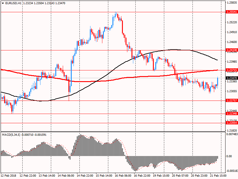 Доллар США умеренно подешевел против основных валют, отреагировав на детали протокола январского заседания ФРС. Сейчас пара EUR/USD торгуется на $1.2347. Важное сопротивление расположено на $1.2372 (МА(200) для Н1)