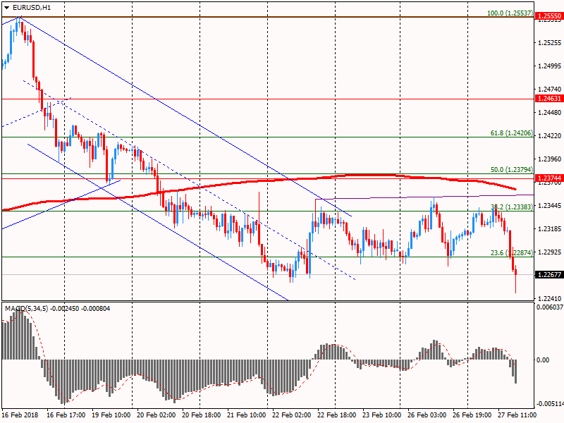 Доллар США вырос против основных валют на фоне комментариев Пауэлла и сильных данных по по индексу уверенности потребителей в США. Пара ЕUR/USD упала до минимальных уровней с 12 февраля и в настоящий момент торгуется на отметке $1.2267