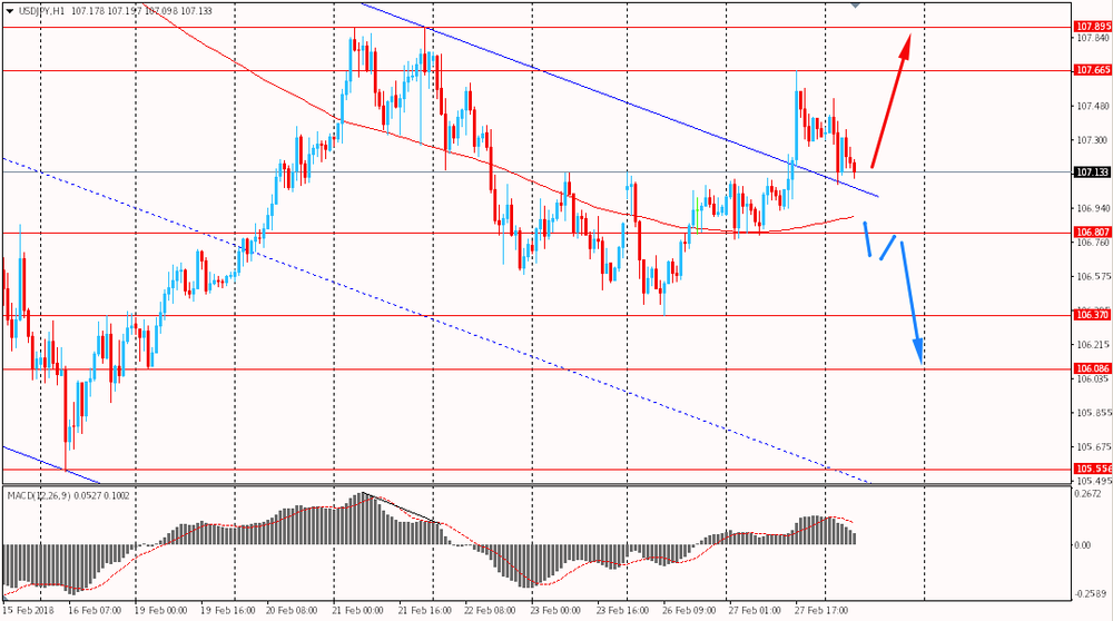 Сегодня пара USD/JPY торговалась с понижением и опустилась к Y107.05. Пара немного корректируется после вчерашнего роста. Стоит отметить, что вчера USD/JPY совершила пробой сопротивления глобального нисходящего канала от 2 февраля, а сегодня пара проводит ре-тест данного пробитого сопротивления. Помимо этого, USD/JPY по-прежнему находится выше уровня MA 200 H1 и быки удерживают пару под своим контролем.