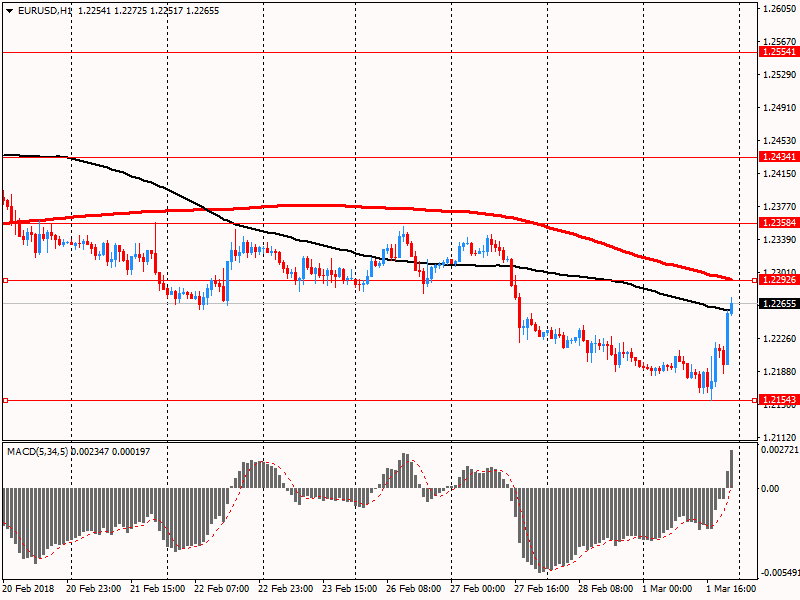 Доллар резко подешевел против основных валют, причиной чему была жесткая реакция ряда стран на решение США о введении тарифов на сталь и алюминий. Пара EUR/USD торгуется на новом сессионном максимуме, а пары USD/JPY и USD/CHF обновили сессионные минимумы.