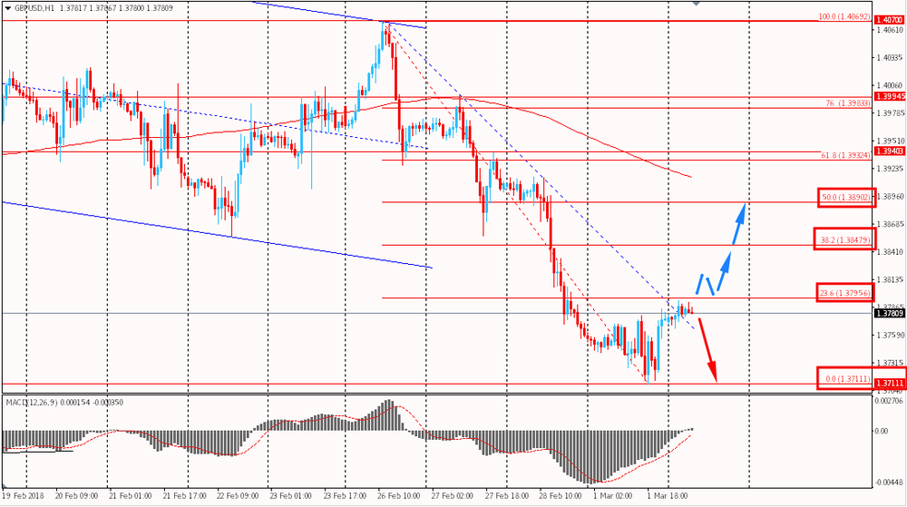 Пара GBP/USD сегодня торгуется в торговом диапазоне $1.3765-90, продолжая удерживаться на вчерашних максимумах. Напомним, вчера британская валюта смогла закрыть день ростом, впервые с 26 февраля. Помимо этого, пара уверено торгуется ниже скользящей средней MA 200 H1, что говорит о полном контроле со стороны медведей. В то же время пара на данный момент тестирует сопротивление наклонного нисходящего канала от 26 февраля и есть вероятность продвижения пары в более глубокую коррекцию.