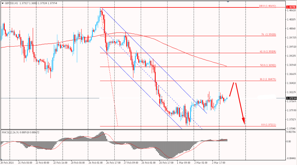 Пара GBP/USD сегодня утром торгуется в диапазоне $1.3775-10. Уже второй день фунт пытается закрепится выше пробитого накануне уровня сопротивления нисходящего канала. Однако, глобально британская валюта находится под уровнем скользящей средней MA 200 H1, что говорит о доминирование со стороны медведей. По этой причине можно ожидать чуть более глубокой коррекции вверх, но с последующим разворотом и возвратом в общий нисходящий тренд.