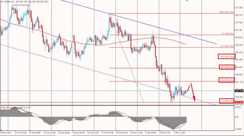 Сегодня пара USD/JPY торговалась в диапазоне Y105.40-65. Пара по-прежнему остается на минимумах и находится вблизи пятничных. Глобально пара остается под линией скользящей средней MA 200 H1 и находится под полным контролем медведей в рамках общего нисходящего тренда от 2 февраля.