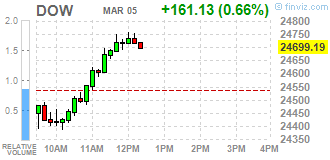 Большинство компонентов индекса DOW в плюсе (28 из 30). Лидер роста - General Electric Company (GE, +3.30%). Аутсайдер - NIKE, Inc. (NKE, -1.31%).