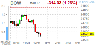 Большинство компонентов индекса DOW в минусе (28 из 30). Лидер роста - International Business Machines Corporation (IBM, +0.55%). Аутсайдер - Exxon Mobil Corporation (XOM, -3.05%).