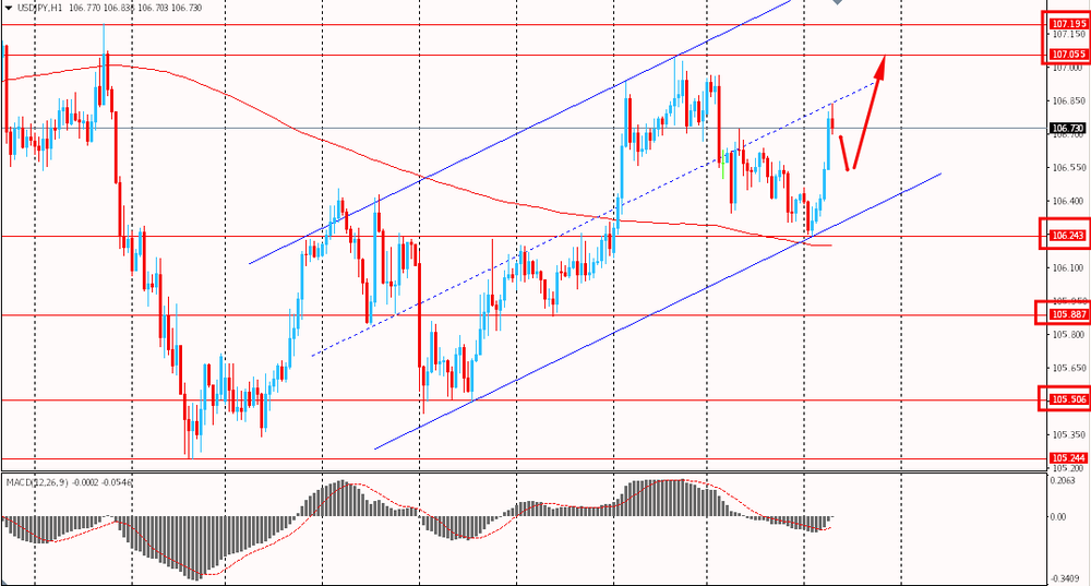 Сегодня пара USD/JPY резко выросла к Y106.80. Пара отступила от вчерашних минимумов и на данный момент пытается совершить пробой срединной линии восходящего канала от 2 марта. Пара нашла поддержку на скользящей средней MA 200 H1 и устремилась вверх. Быки продолжают контролировать ситуацию по данной паре.