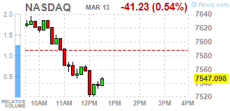 Все сектора S&P в минусе. Наибольшее снижение показывает технологический сектор (-0.9%).