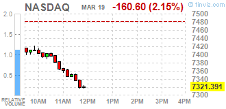 | Nasdaq 100 | 6870.50 | -173.50 | -2.46% |