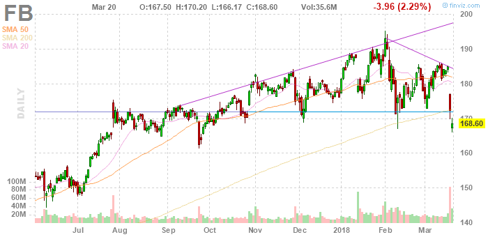 На текущий момент акции Facebook Inc. (FB) котируются по $168,60 (-2,29%)
