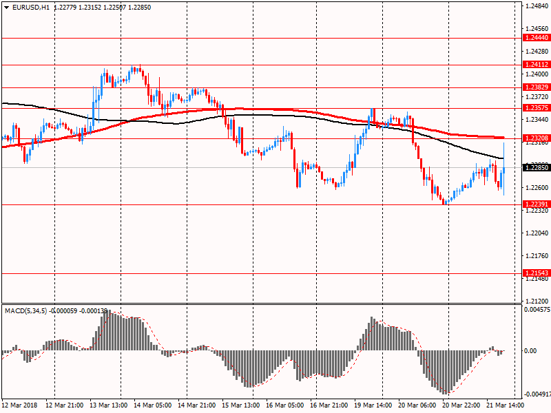 Доллар США резко снизился против основных валют, отреагировав на детали сопроводительного заявления и обновленные экономические прогнозы ФРС. Сейчас пара EUR/USD торгуется на $1.2285. Ближайшее сопротивление - $1.2321 (МА(200) для Н1)