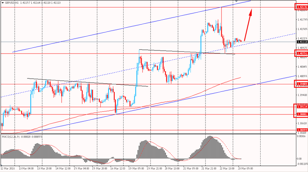 Пара GBP/USD сегодня утром торгуется в торговом диапазоне $1.4100-20. Фунт немного замер и консолидируется после вчерашнего снижения от линии сопротивления канала от 1 марта к его срединной линии. По-прежнему пара находится существенно выше скользящей средней MA 200 H1. Стоит отметить, что глобально британская валюта находится под полным контролем быков.