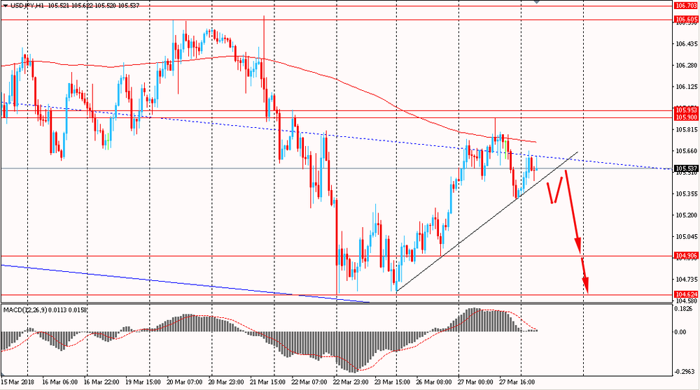 Сегодня пара USD/JPY немного выросла к уровню Y105.65. Вчера пара провела несколько попыток преодолеть уровень скользящей средней MA 200 H1, однако безуспешно и к завершению торгового дня откатила, закрыв день в красной зоне. Если сегодня паре удасться закрепиться ниже уровня поддержки последних 3-х дней роста, то нас ожидает формирование очередного медвежьего импульса в глобальном нисходящем канале от 13 марта. Однако, если пара преодолеет MA 200 H1 и закрепится выше, рост может продолжиться еще на несколько дней.