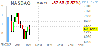 | Nasdaq 100 | 6479.00 | -82.25 | -1.25% |