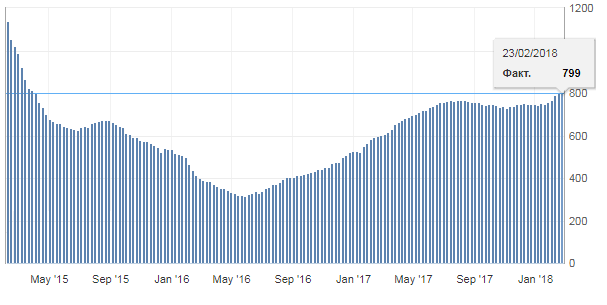 Отчет нефтесервисной компании Baker Hughes показал: с 24 по 29 марта количество активных буровых установок по добыче нефти в США снизилось на 6 штук, до 798 единиц, но осталось вблизи максимума с начала апреля 2015 года. Кроме того, это было 2 падение за последние 9 недель. Количество установок по добыче газа выросло на 4 штуки, составив 192 единицы. Тем временем, общее число буровых установок (газовых, нефтяных и прочих) снизилось на 2 штуки, до 993 штук.