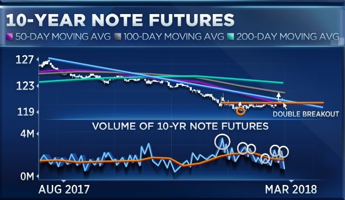Сиана указывал конкретно на рынок облигаций и золоту в качестве ключевых индикаторов, которые могут предположить, что второй квартал может быть таким же ухабистым, как и первый квартал. На графике фьючерсов 10-летних гособлигаций США, Сиана видит паттерн "двойной прорыв", который недавно образовался. Это, наряду с тем фактом, что ралли фьючерсов 10-летних гособлигаций США также сопровождались большим объемом, вынуждает Сиана полагать, что рынок облигаций вскоре может начать ралли.