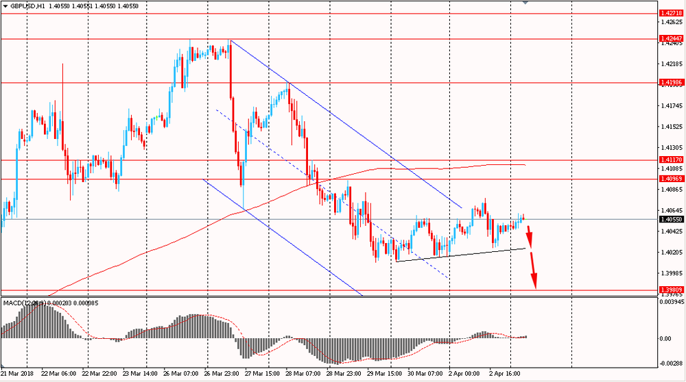 Пара GBP/USD сегодня утром торговалась в диапазоне $1.4045-60. Вчера, как и в пятницу, фунт торговался в боковом движении. Пара консолидируется, по по-прежнему находится ниже сопротивления скользящей средней MA 200 H1 и около линии сопротивления общего нисходящего канала от 27 марта. Стоит отметить, что глобально британская валюта продолжает находится под контролем медведей. Однако, если произойдет закрепление фунта выше линии MA 200 H1, ситуация изменится на противоположную.