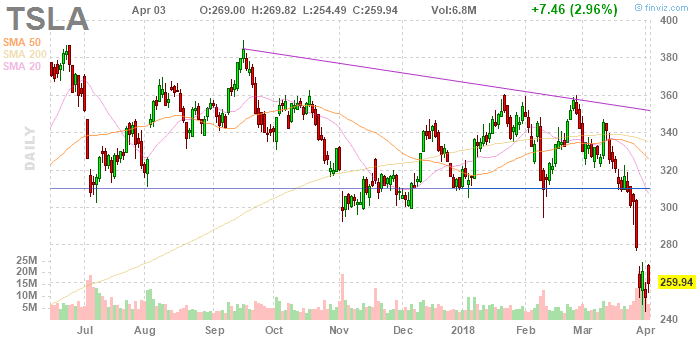На текущий момент акции Tesla (TSLA) котируются по $259.94 (+2.96%).