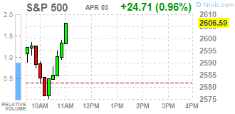 | S&P 500 | 2596.25 | +21.25 | +0.83% |