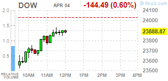 Большинство компонентов индекса DOW в минусе (22 из 30). Лидер роста - NIKE, Inc. (NKE, +1.26%). Аутсайдер - The Boeing Company (BA, -2.64%).