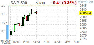 Большинство секторов S&P в минусе. Больше всего выросли сектор конгломератов (+0.8%), а наибольшее снижение демонстрирует сектор промышленных товаров (-1.1%).