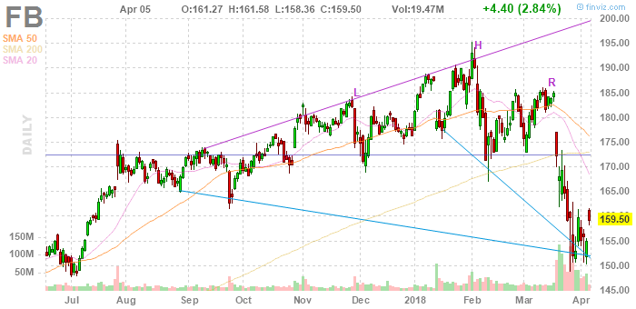 На текущий момент акции Facebook (FB) котируются по $159,50 (+2,84%)