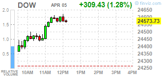 Большинство компонентов индекса DOW в минусе (29 из 30). Лидер роста - The Boeing Company (BA, +2.91%). Аутсайдер - Pfizer Inc. (PFE, -0.73%).