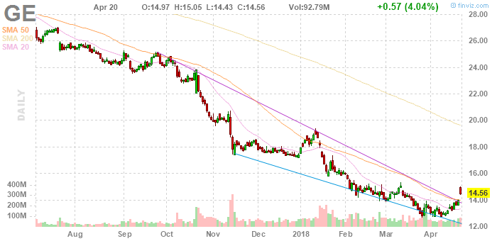 На текущий момент акции General Electric (GE) котируются по $14,56 (+4,04%)