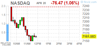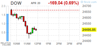 Большинство компонентов индекса DOW в минусе (22 из 30). Лидер роста - General Electric Company (GE, +3.82%). Аутсайдер - Apple Inc. (AAPL, -3.36%).