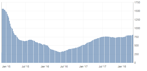 Отчет нефтесервисной компании Baker Hughes показал: с 14 по 20 апреля количество активных буровых установок по добыче нефти в США увеличилось на 5 штук, до 820 единиц, что является максимальным значением с середины марта 2015 года. Количество установок по добыче газа не изменилось, составив 192 единицы. Тем временем, общее число буровых установок (газовых, нефтяных и прочих) увеличилось на 5 штук, до 1013 штук.
