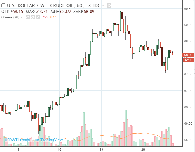 В настоящее время нефть марки West Texas Intermediate торгуется на уровне $68.09 (-0.07%) по сравнению с $68.16 до публикации данных.
