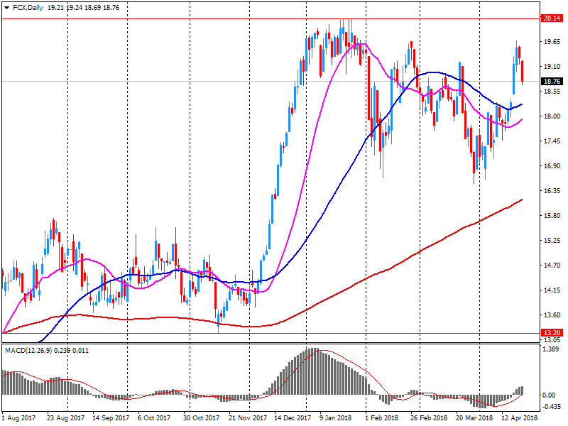 Согласно обнародованному отчету, прибыль компании Freeport-McMoRan (FCX) по итогам первого квартала 2018 финансового года (ФГ) достигла $0.46 в расчете на одну акцию (против $0.15 в первом квартале 2017 ФГ), что оказалось ниже среднего прогноза аналитиков на уровне $0.56.