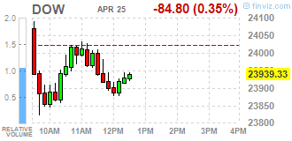 Большинство компонентов индекса DOW в минусе (22 из 30). Лидер роста - The Boeing Company (BA, +1.70%). Аутсайдер - General Electric Company (GE, -4.90%).