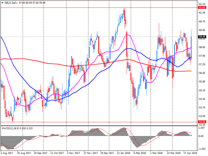 Акции SBUX на премаркете снизились до уровня $58.35 (-1.73%).