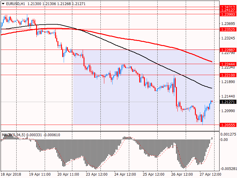 В пятницу евро укрепился, восстановив все позиции, утраченные в первой половине сессии. Повышение пары EUR/USD происходило вопреки повсеместному росту американской валюты, а также публикации благоприятных данных по ВВП США и отчета по потребительским настроениям. Скорее всего, причинами роста пары были частичная фиксация прибыли после значительного ослабления евро с 19 апреля, а также умеренное снижение доходности 10-летних облигаций США.