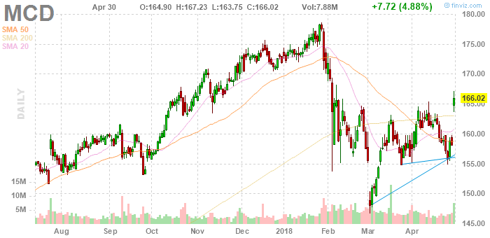 Акции крупнейшей в мире сети фаст-фудов по доходам выросли на 5%, так как глобальные сопоставимые продажи превысили прогнозы Wall Street, чему способствовала сила на зрелых рынках в Великобритании и Германии.