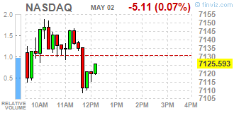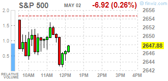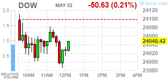 Большинство компонентов DOW в минусе (23 из 30). Лидер роста - Apple Inc. (AAPL, +3.93%). Аутсайдер - The Travelers Companies, Inc. (TRV, -2.39%).