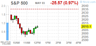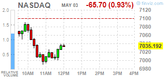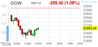 Большинство компонентов DOW в минусе (29 из 30). Лидер роста - The Procter & Gamble Company (PG, +0.26%). Аутсайдер - Caterpillar Inc. (CAT, -3.33%).