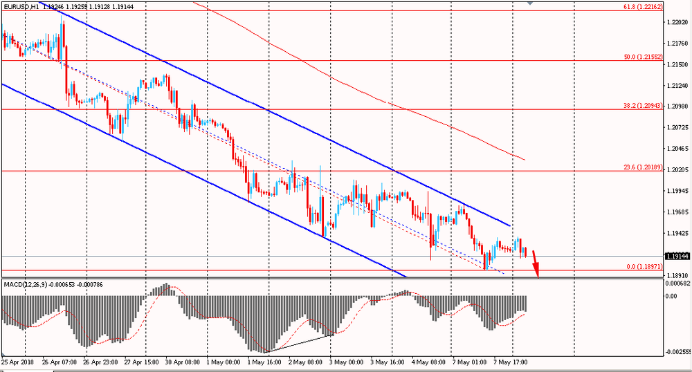 Пара EUR/USD сегодня утром торговалась в диапазоне $1.1910-35. В понедельник евро, оттолкнулся от линии сопротивления канала и в очередной раз закрыл день снижением. На данный момент, пара все еще находится ниже уровня скользящей средней MA 200 H1, около линии сопротивления глобального нисходящего канала и торгуется под полным контролем медведей. Однако, стоит отметить, что на часовом графике сформировалась бычья дивергенция по индикатору MACD, что сигнализирует о возможном формирование глубокой коррекции или развороте цен.
