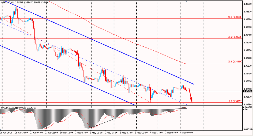 Пара GBP/USD сегодня утром торговалась в диапазоне $1.3545-75, около сопротивления нисходящего канала. В понедельник фунт корректировался и оттолкнувшись от срединной линии нисходящего канала приблизился к сопротивлению тренда. На данный момент пара может сформировать очередной нисходящий импульс т.к. по-прежнему находится ниже уровня скользящей средней MA 200 H1 под полным контролем медведей.