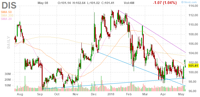На текущий момент акции Disney (DIS) котируются по $101,41 (-1,04%), а Comcast (CMCSA) - по $30,92 (-4,55%)