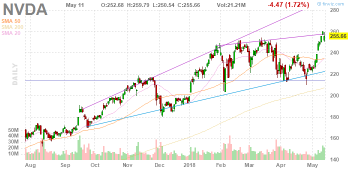 На текущий момент акции Nvidia Corp (NVDA) котируются по $255,66 (-1,72%)