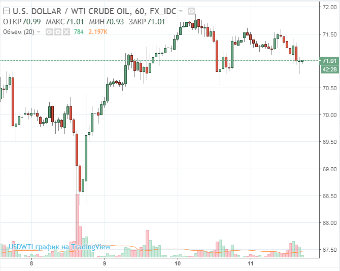 В настоящее время нефть марки West Texas Intermediate торгуется на уровне $71.01 (-0.51%) по сравнению с $70.99 до публикации данных.