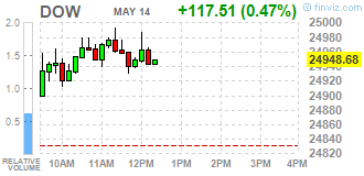 Большинство компонентов DOW в плюсе (24 из 30). Лидер роста - UnitedHealth Group Incorporated (UNH, +1.20%). Аутсайдер - Verizon Communications Inc. (VZ, -0,33%).